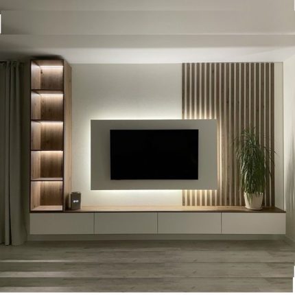 Elegant TV Unit with Backlighting and Side Shelves