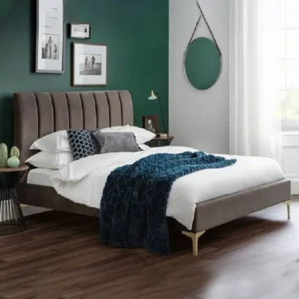 Velvet Upholstered Vertical Tufted Bed