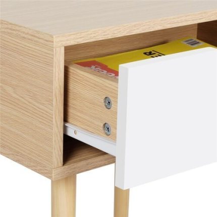 This stylish 2-drawer side table is the ideal size for your bedroom. It provides a useful storage drawer and sits