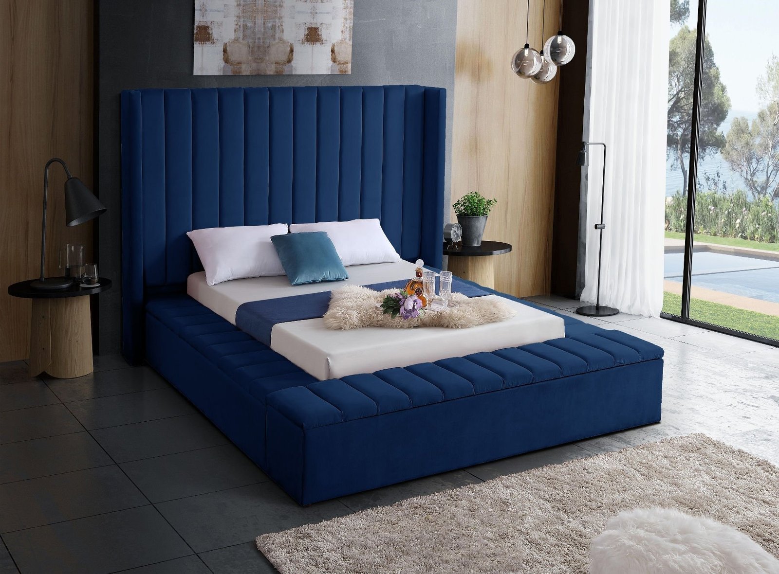 Channel tufting / storage velvet king bed