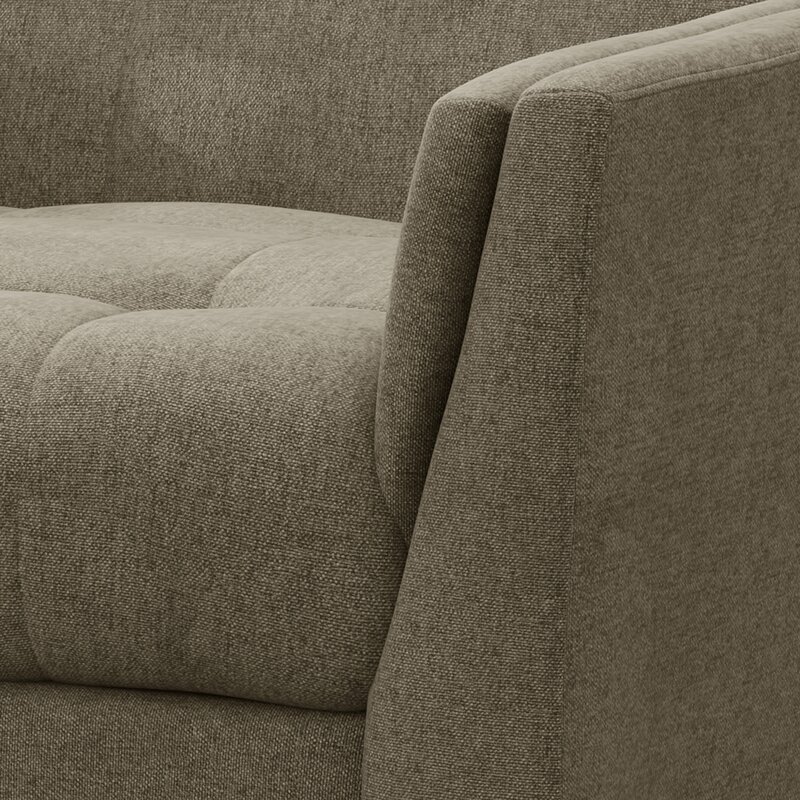 Neutral seating with a faint herringbone pattern adopts dramatic channeling for trend-forward texture and a plush feel in this contemporary