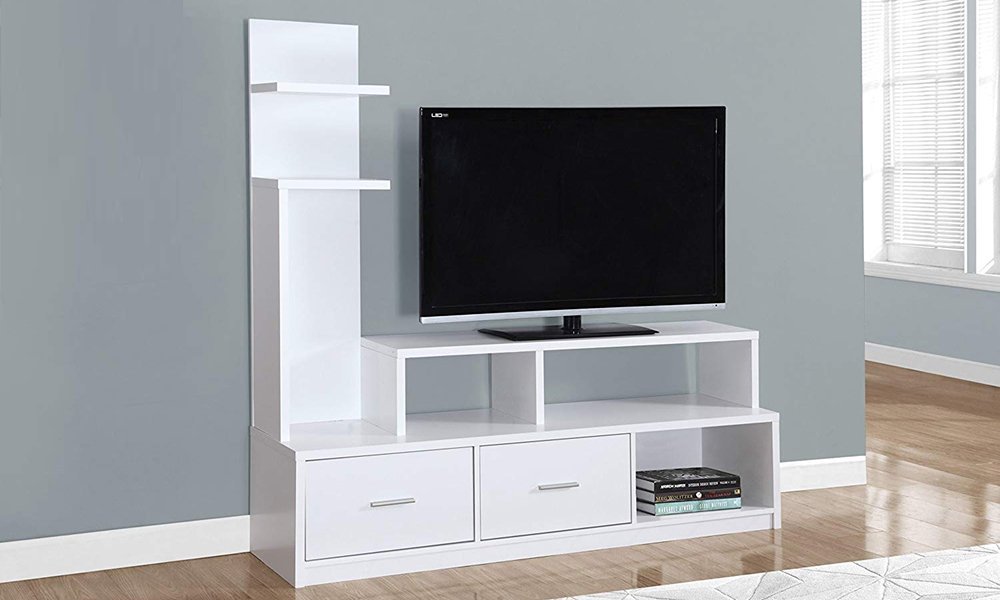 This contemporary TV stand and display tower in a chic dark taupe wood design will update your entertainment center for the twenty-first century. Numerous storage choices are available, including two sizable drawers on metal slides with elegant silver toned knobs as accents, an open cubby, and plenty of shelf space for all of your entertainment equipment and decorative items.Features:Modern DesignWood with an 18 mm thicknessTV stand and display tower combinedTwo substantial storage drawersThere is plenty shelf space for ornamental items.Black, Grey, Taupe, and WhiteAvailable in many sizes and huesDimensions:Dimensions; 150cm W x 150cm H x 45cm DNote:Color variations may occur due to color combinations displayed on the monitor/screen. To confirm the product, you can visit our store or browse our catalog.