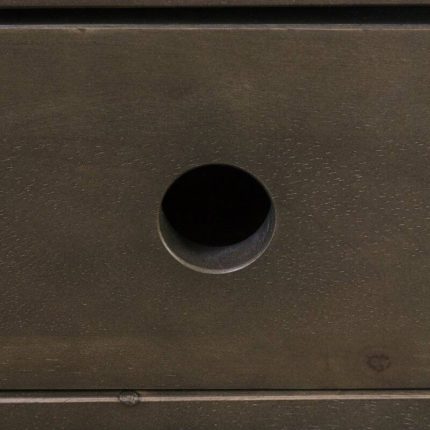 The designed Tate streamlines history with modernized legs and soft finishes. A single drawer and an open shelf on the