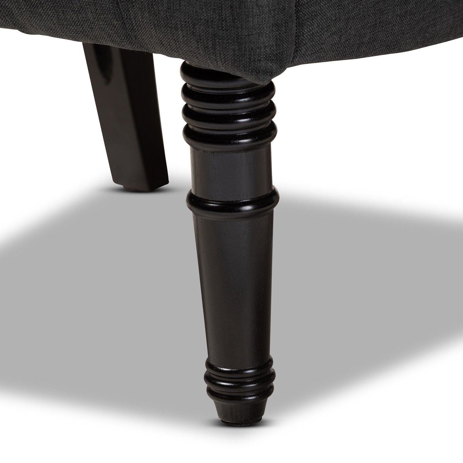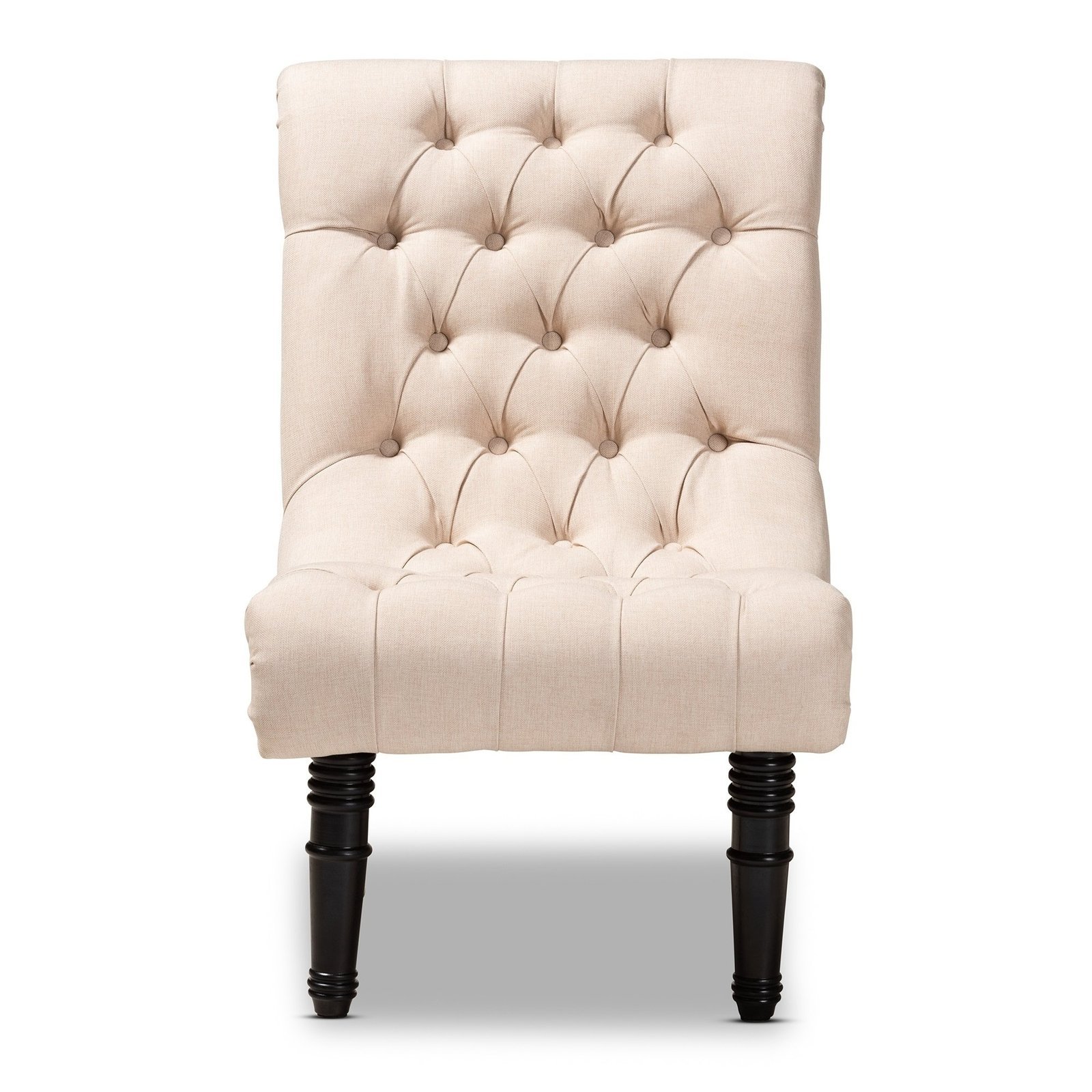 This exquisitely crafted chair, with its aristocratic profile, is guaranteed to up the decor of any living area. The curled back of this stylish chair offers both comfort and elegance. The seat and back button tufting, as well as the black ring-turned legs, show striking attention to detail.Features:Traditional and vintage barrel accent chair TraditionalMaterials: 100% polyester linen cloth, MDF, and foamBeige and charcoal color and many moreFrame made of eucalyptusPolyester upholstery fabric made of linenBlack turned ring legsTopping buttonsincludes a single chair.Assembly: completedSpot cleaning is advised.Dimensions:Dimensions (overall): 100cm H x 60cm W x 80cm DNote:Color variations may occur due to color combinations displayed on the monitor/screen. To confirm the product, you can visit our store or browse our catalog.