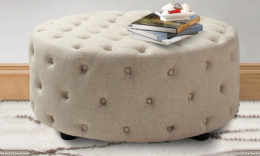 This circular cocktail ottoman will stand out in your living area because not all ottomans are created equal. This round, vintage-inspired Tufted Linen ottoman can bring beauty to your bedroom, entrance, or living room and is the ideal complement for tastes ranging from French country to glam. An attractive flair is produced by old world components like button tufting and a rustic wood finish. You can easily transfer this item from room to room because to its casters.Features:Shape: RoundOn all sides tuftedUpholstery material; FabricSeat filling foamAvailable in many sizes and huesDimensions:Dimensions: 45cm H x 90cm W x 90cm DNote:Color variations may occur due to color combinations displayed on the monitor/screen. To confirm the product, you can visit our store or browse our catalog.