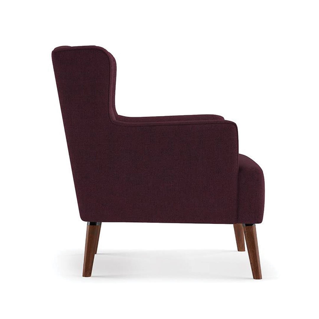 This contemporary arm chair, which oozes mid-century design, features soft, comfy seats covered in a tough, easy-to-clean polyester fabric. Walnut-finished angled legs add to the fashionable retro-modern design of today.Features:Mid-century modern designMaterials: MDF, FabricSolid wood angled legs finishedHigh density foam cushionSeat cushion is attachedDimensions:Dimensions (overall): 75cm W x 75cm D x 80cm H cmNote:Color variations may occur due to color combinations displayed on the monitor/screen. To confirm the product, you can visit our store or browse our catalog.