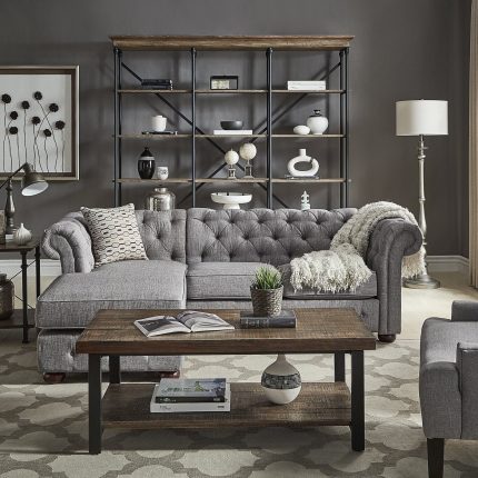 This 7-piece sectional couch will bring mid-century style to your living room. With the flexibility of independent parts, you can design your furniture to fit your living space rather than the other way around, allowing you to create almost any shape. When you are at home, you can relax in the lap of luxury on this sofa, which has button-tufted back cushions and extra-plush seat cushions.Features:Includes Arm ChairMaterial: Fabric, MDFColor options: Dark brown, navy blue, dark greyUpholstery; fabricEasy to clean and maintainAvailable in different sizes and colorsDimensions:Dimensions Overall: 270cm W x 270cm D x 90cm HSofa depth: 90 cmNote:Color variations may occur due to color combinations displayed on the monitor/screen. To confirm the product, you can visit our store or browse our catalog.
