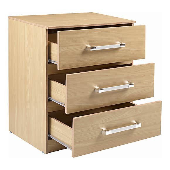 The Jasper bedroom set in Oak, with its modern style, is ideal for bringing a pop of color to any bedroom. This stylish and useful set includes a three drawer chest, a three door, two drawer wardrobe, and a bedside table with two drawers. It also has lovely chrome knobs.Features:Typical mid-century modern designMDF wood constructionMain Material: MDF Wood Children’s RoomQuick and easy assemblyConsists of a closet, a chest of drawers, and a side table.Several sizes and colors availableDimensions:Wardrobe Size: 180cm H x 75cm W x 45cm DChest Of Drawer Size: 72cm H x 60cm W x 40cm DSide Table Size: 46cm H x 45cm W x 35cm DNote:Color variations may occur due to color combinations displayed on the monitor/screen. To confirm the product, you can visit our store or browse our catalog.