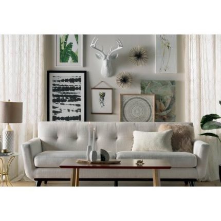 The Paige Tufted Velvet Living Room Sofa complements a variety of home décor styles. The sofa has soft velvet upholstery and nailhead details in a modern and contemporary style. This piece’s high-quality craftsmanship will add both style and comfort to your space. The sofa is made of solitude wood. With this lovely sofa, you can create the living room of your dreams.FeaturesModern and contemporary styleFeatures jewel button tuftingNail head accentsVelvet upholsteryUnique profile designChrome finished legsNail head detailsArm Style Square ArmsBack Style Tufted BackColor Black, Blue, Burgundy, Grey, Ivory, PinkCushion Fill Foam FillSeat Comfort Semi-FirmSeat Style Multiple CushionsDimensions:Dimensions; 80cm H x 210cm W x 85cm DNote:Please note that color variations in products may occur due to color combinations in screen/monitor. You can see our products in store or catalog to confirm the actual product.