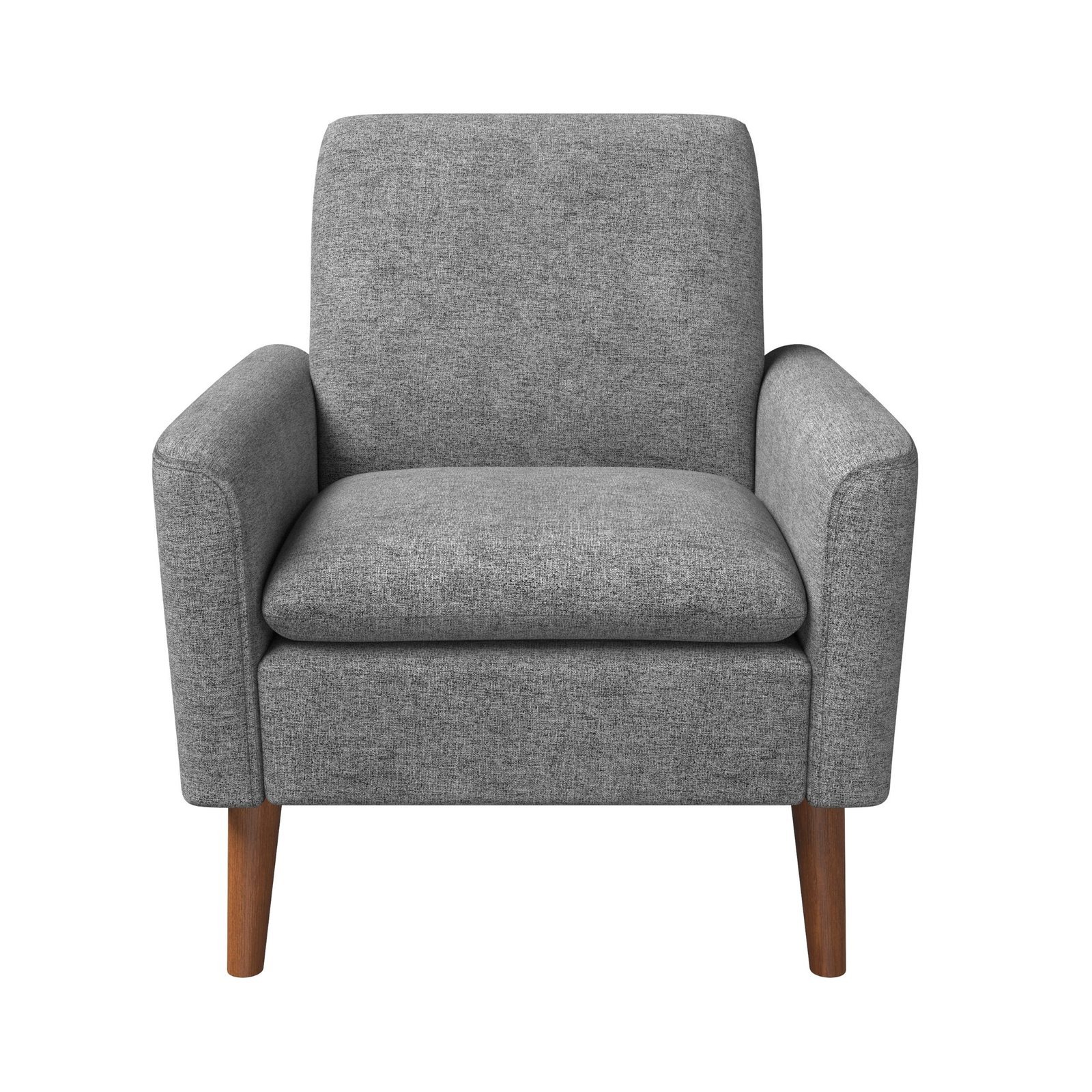 This contemporary arm chair, which oozes mid-century design, features soft, comfy seats covered in a tough, easy-to-clean polyester fabric. Walnut-finished angled legs add to the fashionable retro-modern design of today. Available in Blue, Grey, or Goldenrod as a selection.Features:A silhouette in the modernist eraSupple polyester fabricMaterials: plywood, MDF, and polyesterUpholstery: Goldenrod, Blue, and Greyfinished solid wood angled legs5-inch-thick seat padCushion made of high-density foamAttached is a seat cushion.Retro-inspired modernity for today’s fashionDimensions:Dimensions (overall): 83cm H x 75cm W x 72cm DNote:Color variations may occur due to color combinations displayed on the monitor/screen. To confirm the product, you can visit our store or browse our catalog.