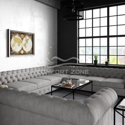 The Garcia U-shaped sectional couch, with its timeless deep button tufts and luxurious rolling arms, will enhance the interior design