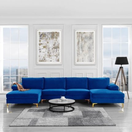 Modern XL Velvet Upholstery U-Shaped Sectional Sofa