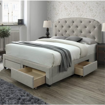 With an unobtrusive straight back and a soft natural linen blend, this simple fabric upholstered bed adds elegance and sophistication